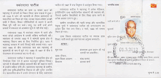 | Indian Postal Stamp Released In Memory Of Padma Bhushan Shri Vasant Dada Patil |